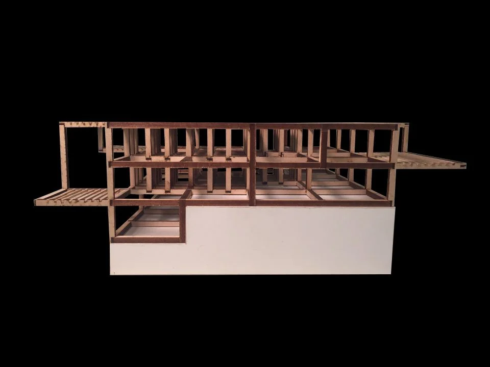Phase 2 is about making an architectural toy, containing the essence extracted from phase 1. The architectural element that was used on Milam House is frames determined by its spatial layout. The spaces arranged within the layout have various closures depending on their purpose. Some spaces are completely closed and some are open, characterized as public spaces.